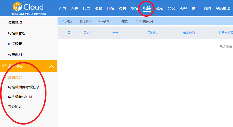 点击电控 =》 展开报表中心 =》点击对应报表查看