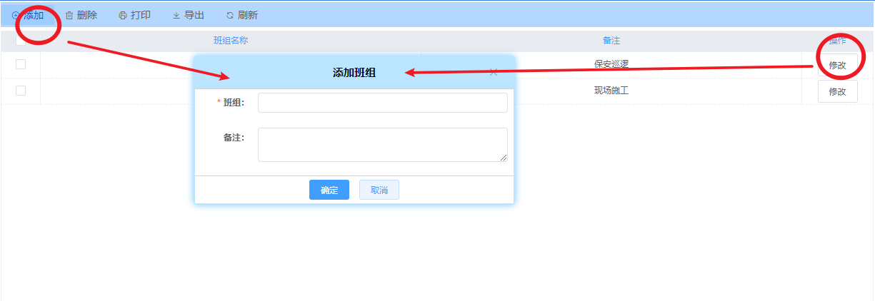 新增或修改班组