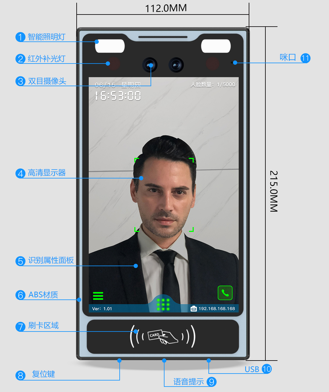 (可选:双频卡(ID卡 + IC卡、二代身份证)