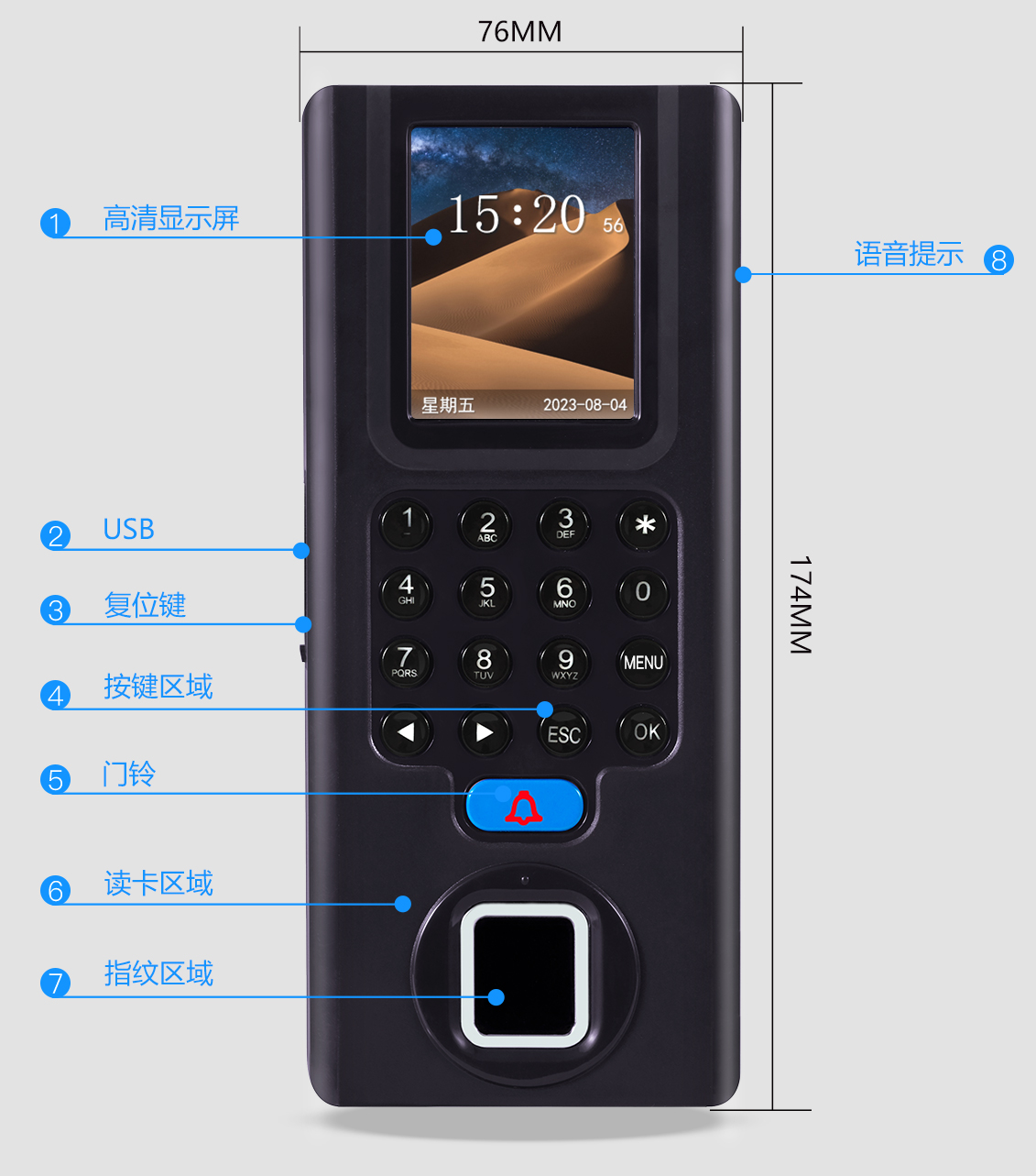 2000人、2000指纹、2000密码、2000卡(IC卡、ID卡)