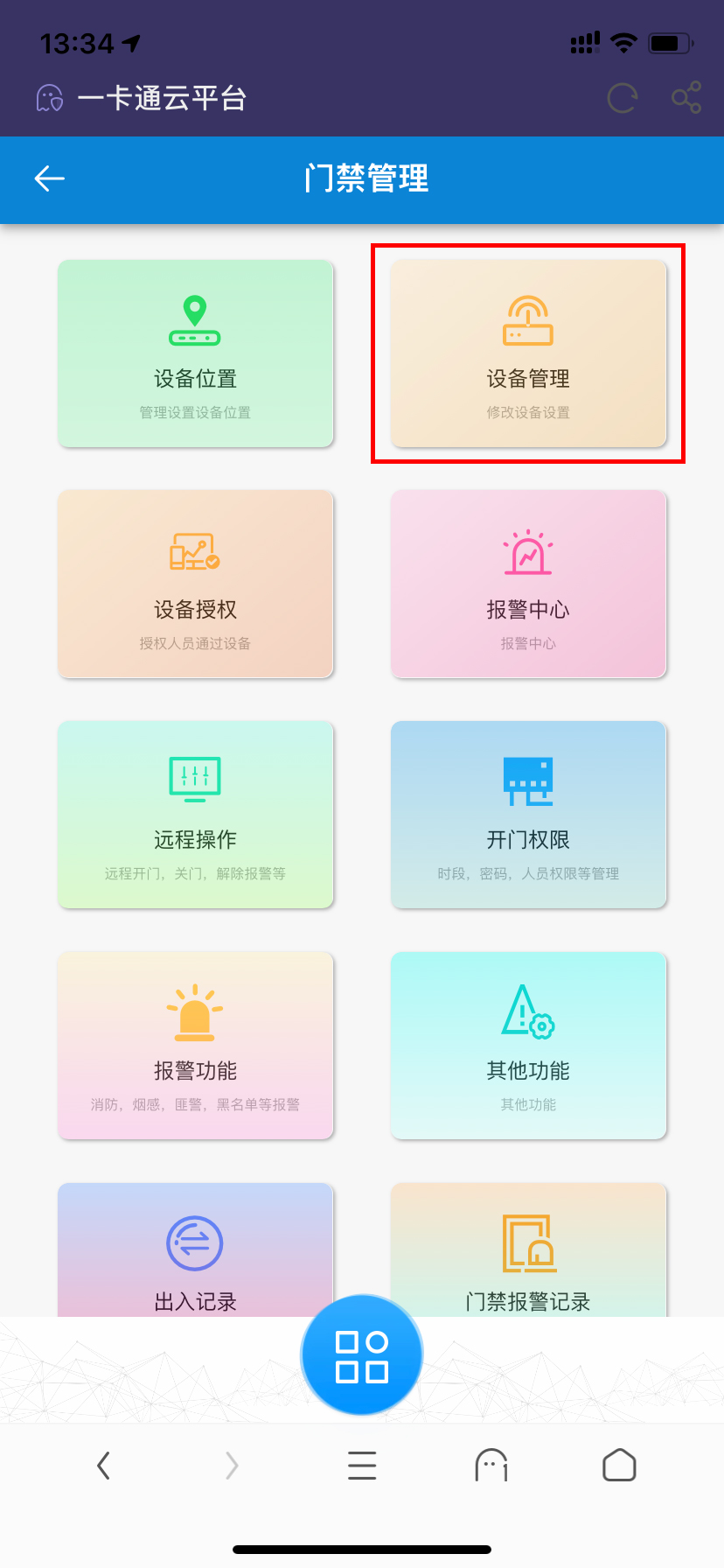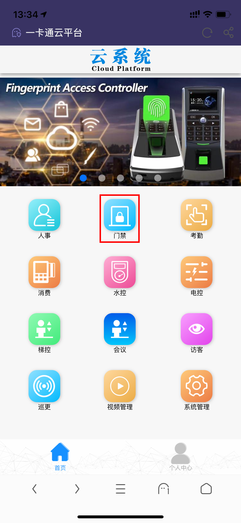 1.手机登录云平台(如无套账,请注册套账,并联系我们激活),选择‘门禁’菜单中的‘设备管理’菜单,点击‘添加’按钮,通过输入16位SN码添加FC-8100T人脸机至云系统中。