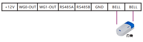 连接门铃:门铃的两组线对应接到人脸机上的两个‘BELL’端子即可(附图)。