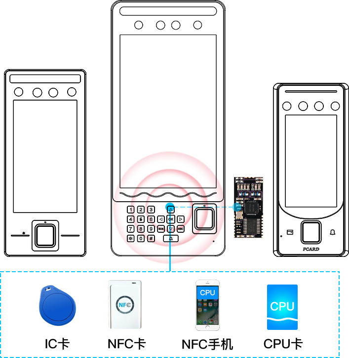 人脸识别、掌静脉识别、指纹识别、二维码识别