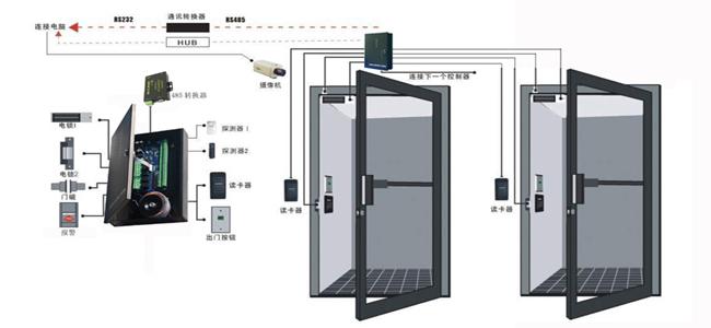 系统支持AB门门禁模式,当任一门受控需开启时,绝对禁止另一扇门处于开启状态,具有自动防尾随跟入功能;对特殊场所,还可以实现3道门以上的多门互锁。