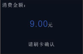 在标准收费模式下进行消费,消费多少按多少,如消费9元,直接按“9”键,再按“确定”按钮,则出现如下界面:
