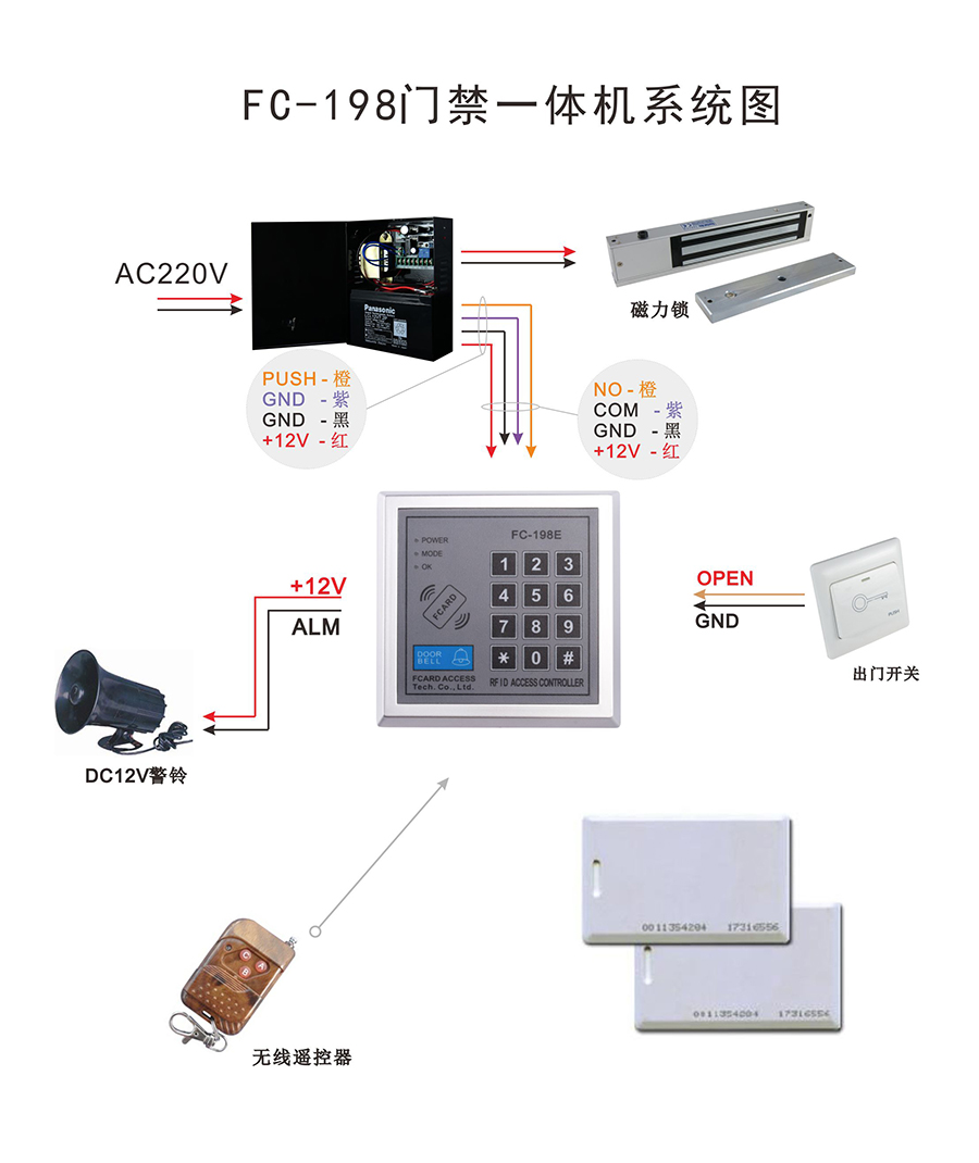 FC-198系列密码键盘门禁一体机,是“广州市英泽电子有限公司”研发生产,经过多年多个版本升级换代的一款门禁产品。该门禁支持数据备份、防复制卡开门、多门数据互拷、防探测开门、母卡发卡、自编号发卡、HID卡识别技术等等功能。是目前较为先进、性价较高的门禁产品。