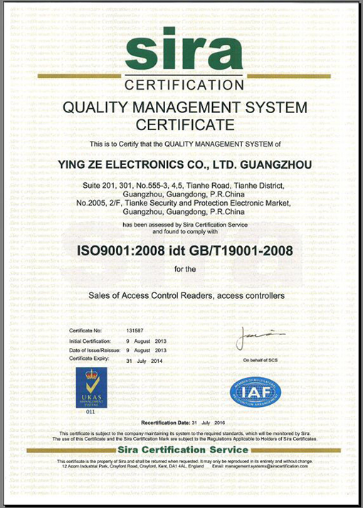2013.09.18 Congratulations that Guangzhou Fcard Electronics Co.,Ltd has passed ISO9001 International Quality Certification System