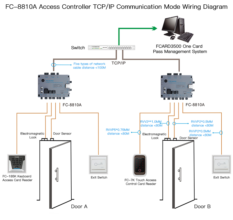 FC-8810A single door access controller TCP/IP communication mode wiring diagram