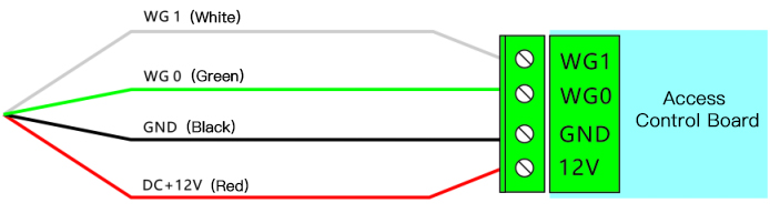 Hello, welcome to use our products, thank you for your support. The wiring of FC-8100T as the face recognition card reader of the access control board is as follows: the +12v line of the face recognition access controller is connected to the +12v terminal of the access control board, the GND line of the face recognition access controller is connected to the GND terminal of the access control board, and the WG0 line of the face machine is correspondingly connected, to the WG0 terminal of the access control board, the WG1 line of the face recognition access controller is correspondingly connected to the WG1 terminal of the access control board, the wiring diagram is as follows: (with photos)