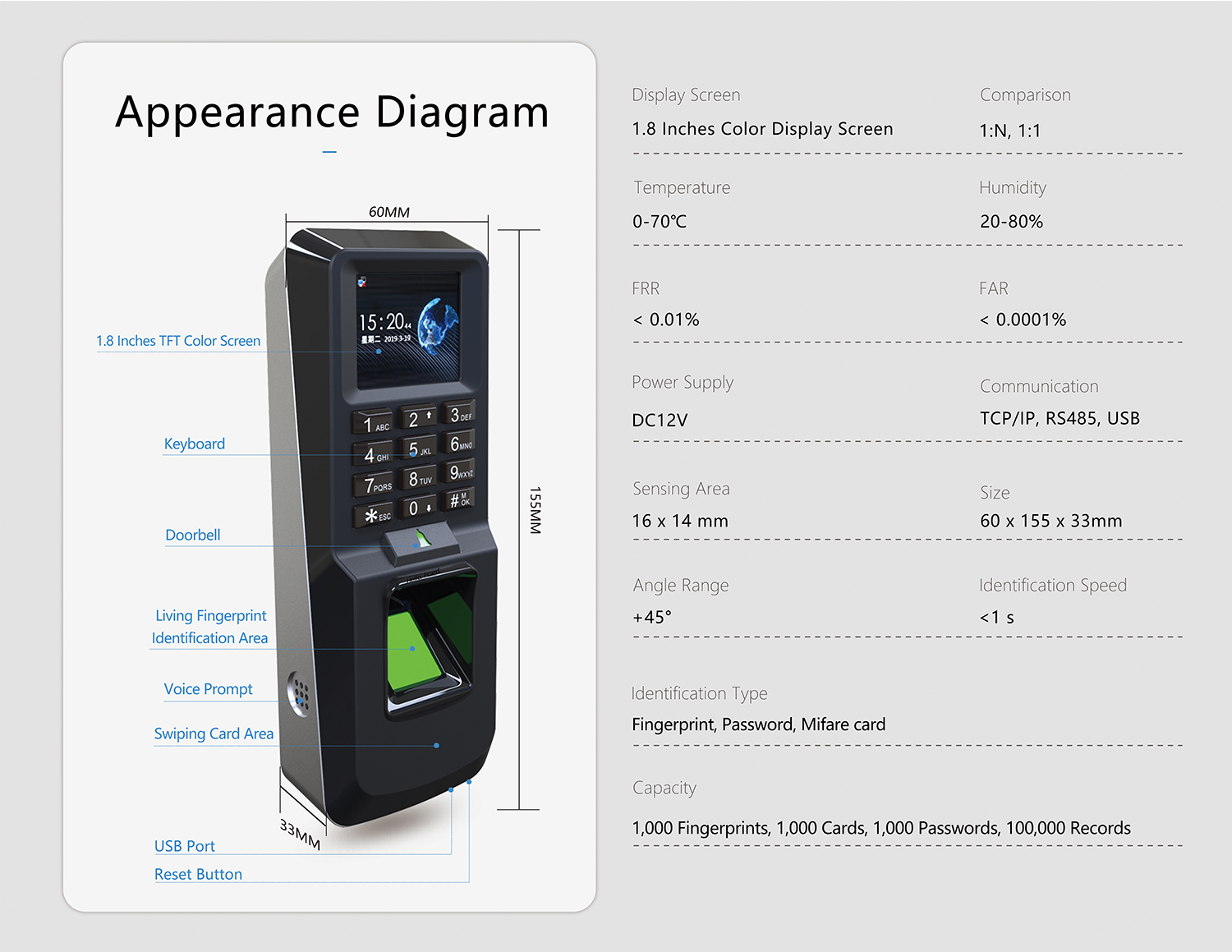Could you Please Provide the External Dimensions of FC-C103E Fingerprint and Time Attendance Access Controller