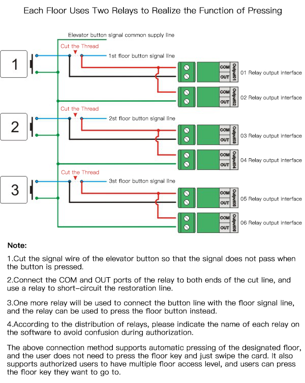 Figure 2. Using two relays on each floor to realize the substituting function, this method is currently widely used.