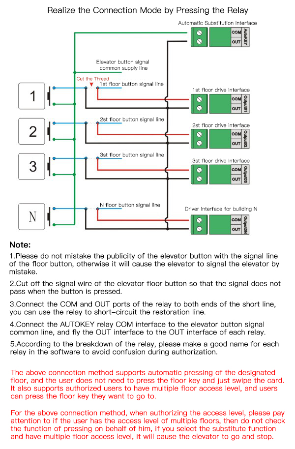 Hello, thank you for purchasing our company’s elevator access control board, you can refer to the following two connection diagrams to connect: