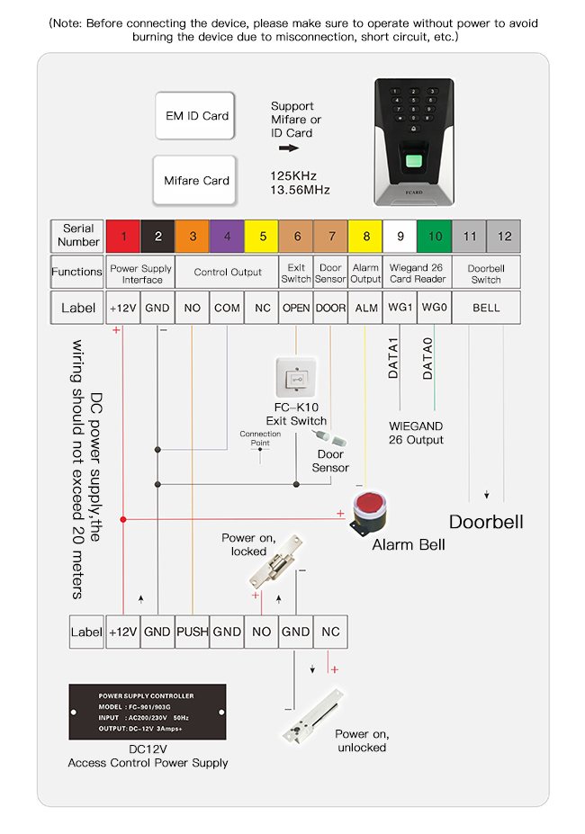 Hello, thank you for purchasing our company's fingerprint access controller, you can refer to the following pictures to connect: