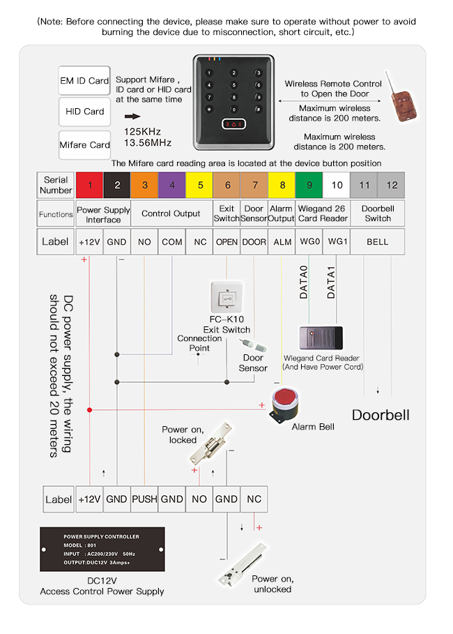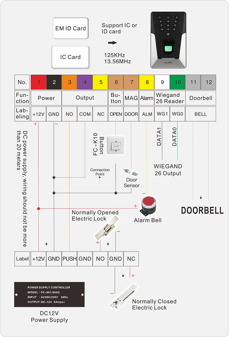 FC-398E Access controller wiring diagram: