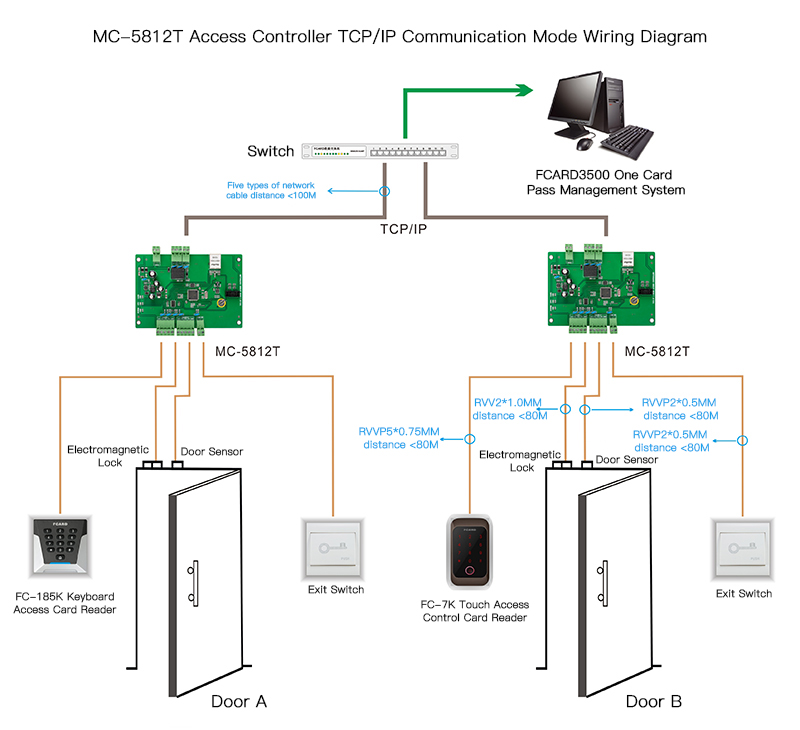 Hello, I purchased the MC-5812T one door access control board from your company a few days ago, during the installation process, some lines are not clear when connected, how to connect specifically, could you please provide me with the communication wiring diagram of FCARD3500 access control board, thank you!