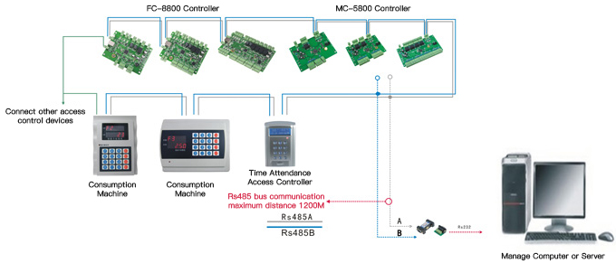 Hello, I have purchased a consumption machine, time attendance access controller, access control board, parking system, and the selected TCP/IP communication method from your company, how do you wire it? Please provide a wiring diagram from your company, thank you!