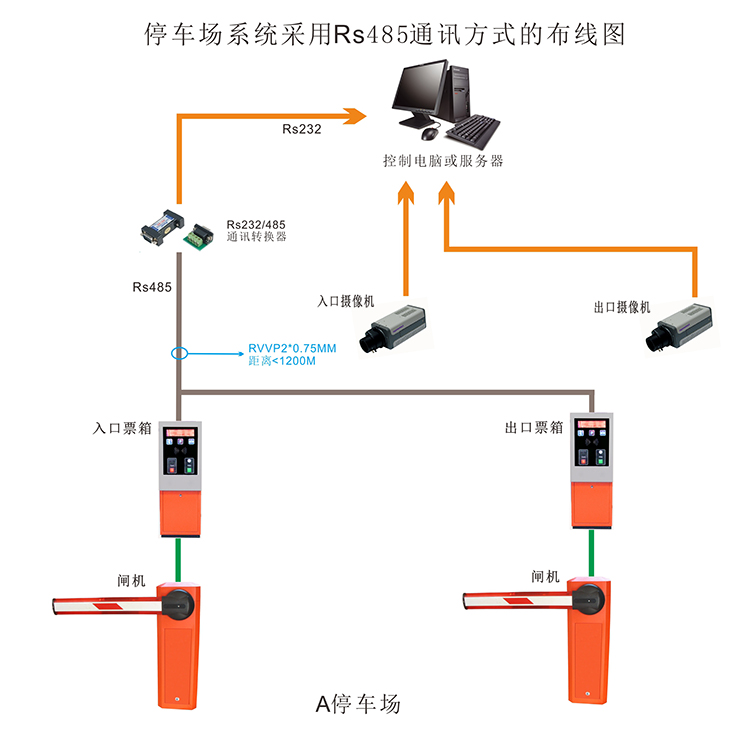 您好,感谢您采购我公司的产品,停车场管理系统的票箱、闸机、通讯转换器等配件的安装和连接,如下图所示,您可以按照布线图的连接进行安装,如果在使用过程中遇到什么问题欢迎拨打免费服务电话400-688-6663。