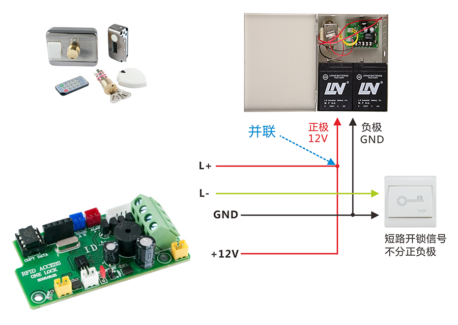 您好,FCL-918智能刷卡锁,门禁电源与出门开关,请问怎么连线,请贵公司提供一下连线图,谢谢