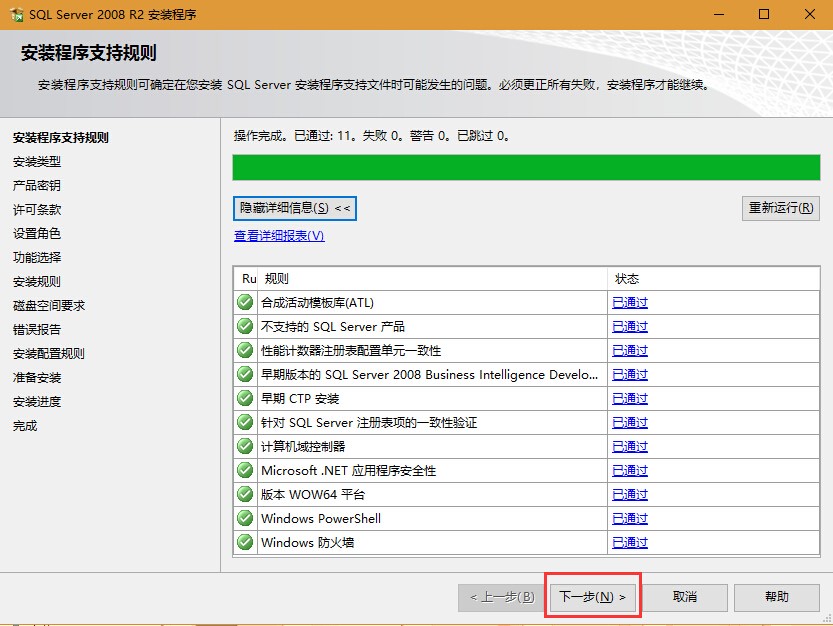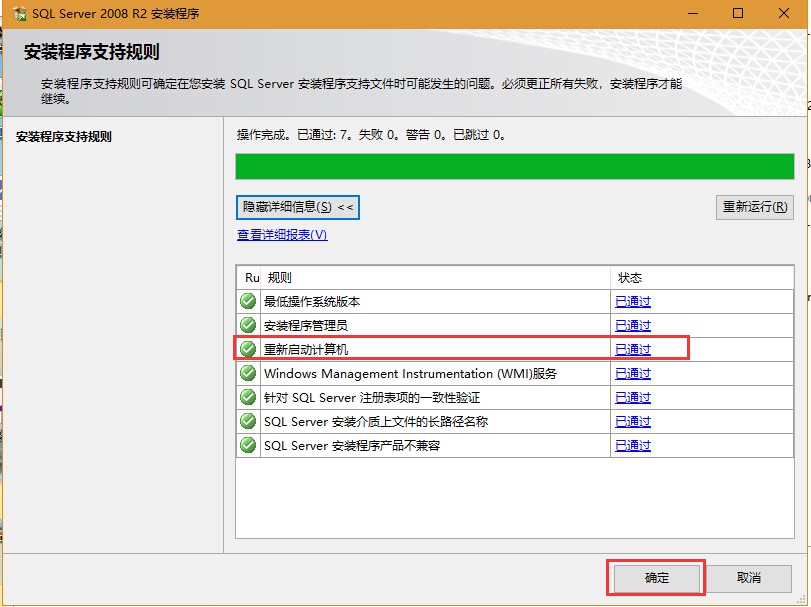 安装过程中,如果出现不能重启计算机这一项不能通过,则需要删除一个注册表项。