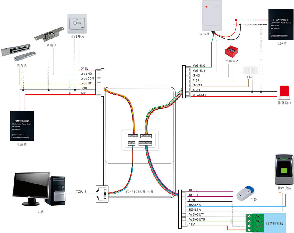 FC-A106 指纹人脸考勤机是采用多核处理器,集合人脸与指纹算法,指纹拒真率< 0.01%、指纹识别时间 <1S、2.8寸TFT彩屏、支持2000人脸、5000指纹、5000卡、5000密码、20万笔记录、支持ID卡(可选支持IC卡)、TCP/IP联网、RS485联网、支持1组开门继电器、1组门磁、1组报警输出,支持U盘备份数据、支持云平台。中文简体、中文繁体、英文(支持机器上切换,其他外语可定制)(台式机)