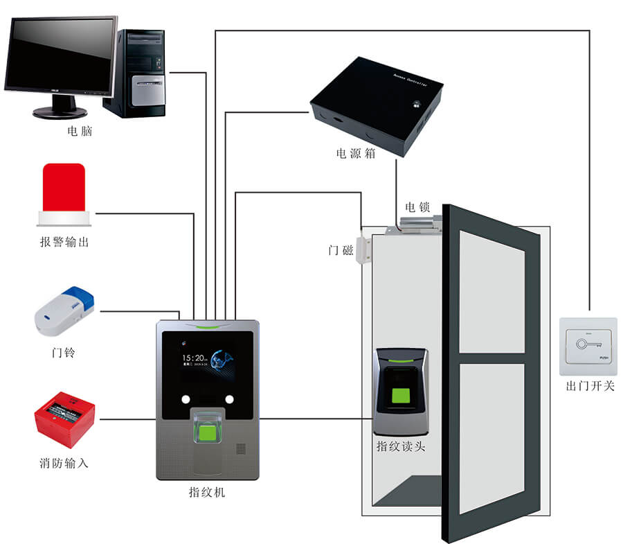 登记方式:指纹、密码、ID卡 (可选IC卡)