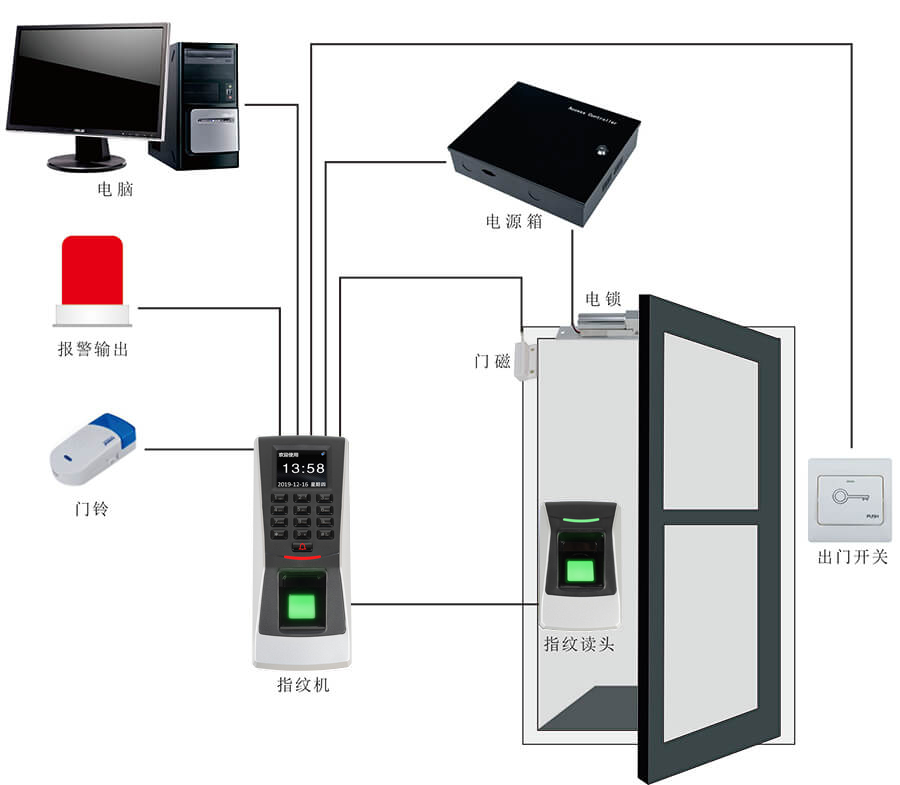 登记方式:指纹、密码、ID卡 (可选IC卡)