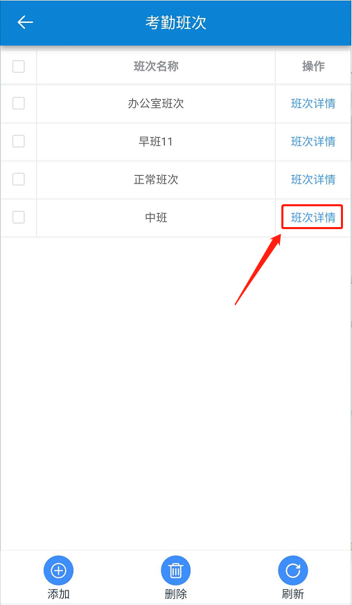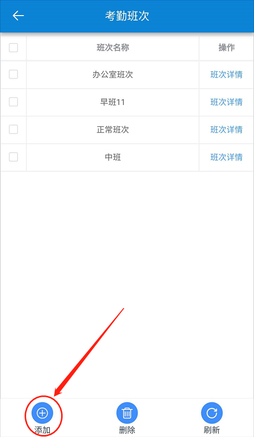 点击【考勤】-【考勤班次】-【添加】。如下图所示: