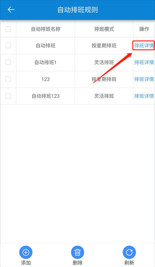 【添加】:可为自动排班规则添加班次;